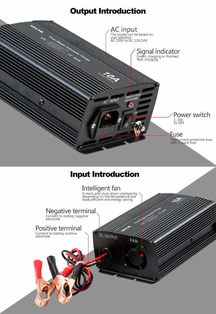 The charger is available in the following specifications: 10A battery charger/15A battery charger/20A battery charger/30A battery charger/40A battery charger/50A battery charger.